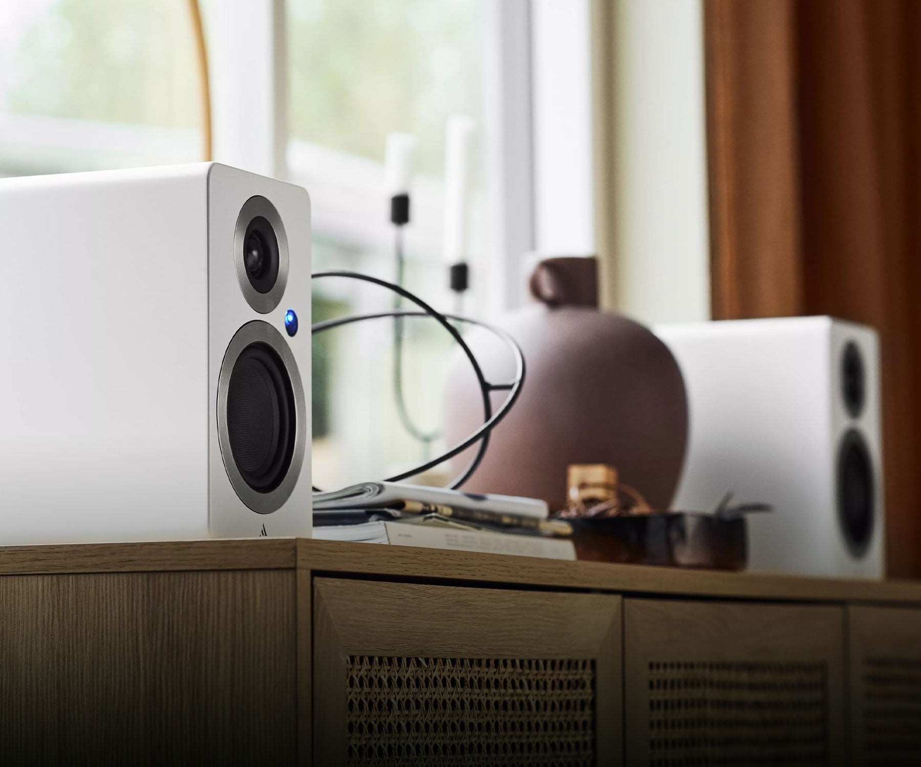 "The Forte A4 mk2 preserves everything that made the original Forte A4 great. The sound quality is still excellent, and the design has been further improved. Additionally, connectivity options have been expanded, and the HDMI ARC capability is the icing on the cake. They can be connected to a TV instead of a soundbar and elevate the audio experience in a home office, a teenager's bedroom, or a small living room. Moreover, they look great wherever you place them."