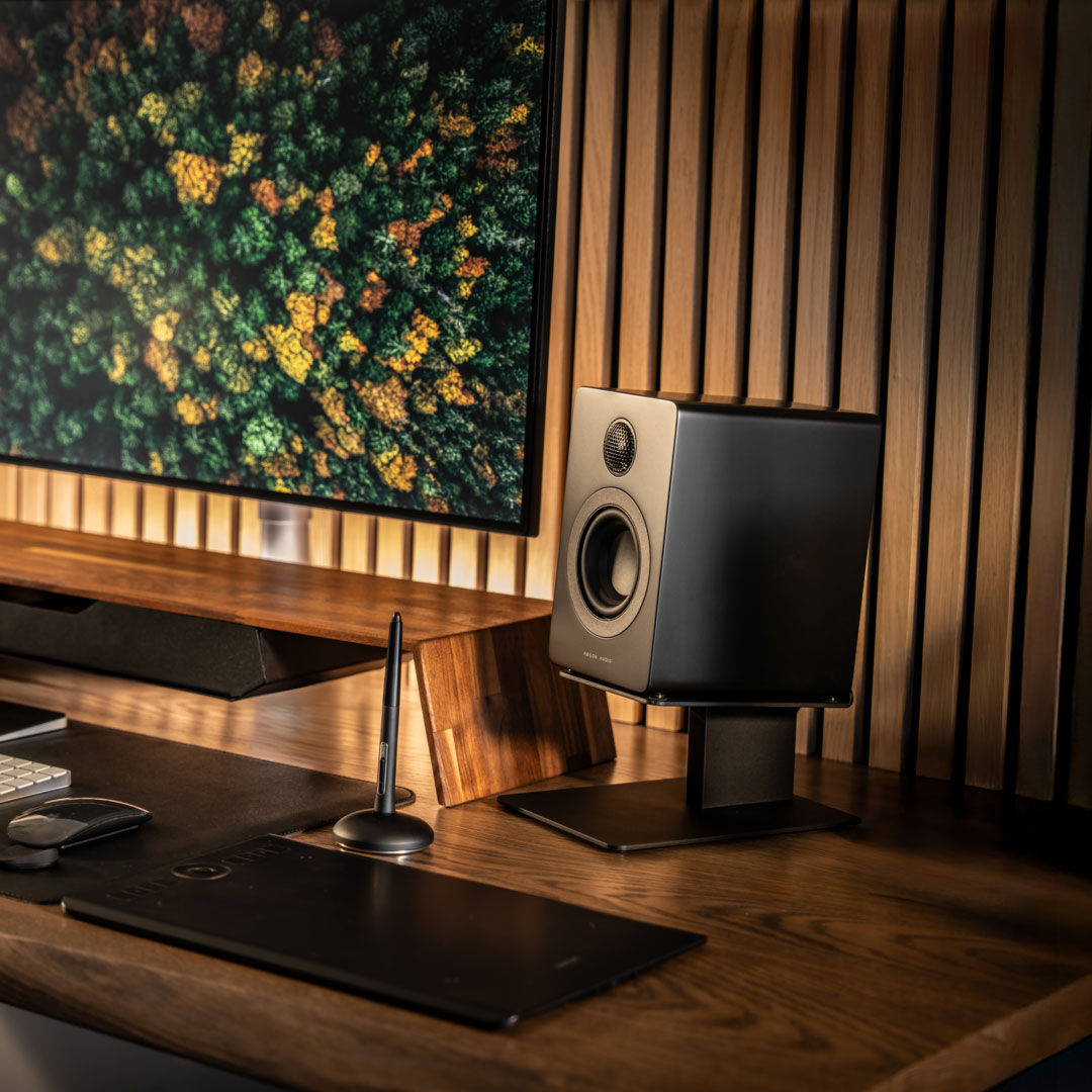 Transform your workspace into a soundstage with rich hi-fi audio. These super compact speakers deliver a surprisingly expansive and precise sound all while keeping your desk effortlessly stylish with their minimalist design. With their small size, they’ll fit snuggly into almost any setup. Equipped with Bluetooth, optical, and USB-C, STUDIE 3 is a true plug-and-play solution that ensures a hassle-free connection with both PC and Mac.